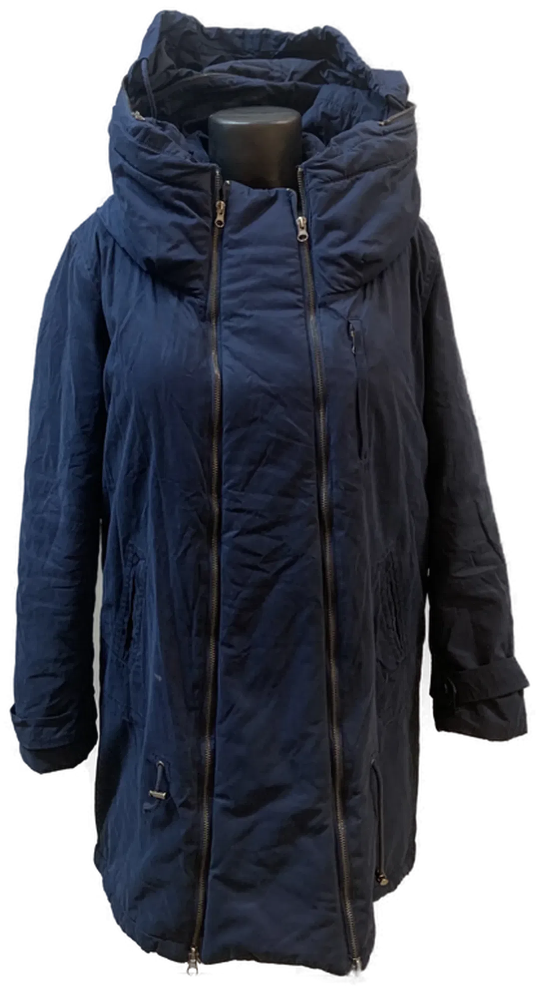 Mit einzipbarer Frontpartie für die Tragezeit und Kapuze