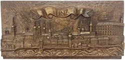 "Linz" Stadtbild Relief Wanddekoration aus Polymerbeton in braun
