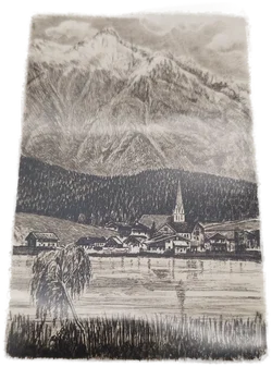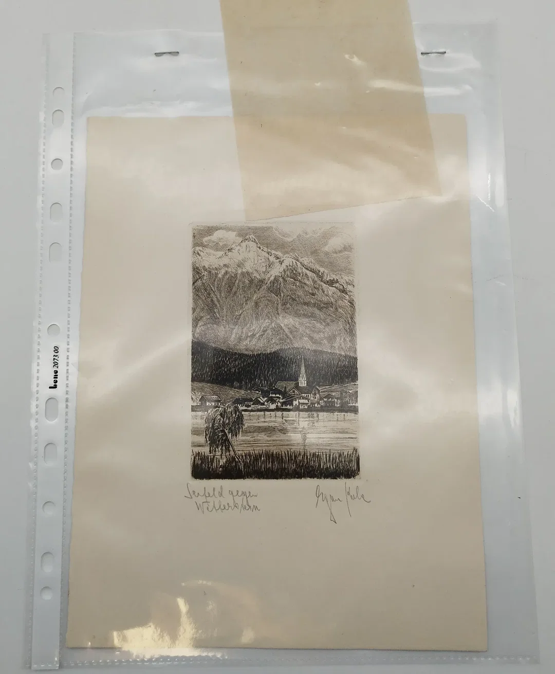 "Seefeld gegen Wetterstern" Original Radierung des Künstlers M.K.